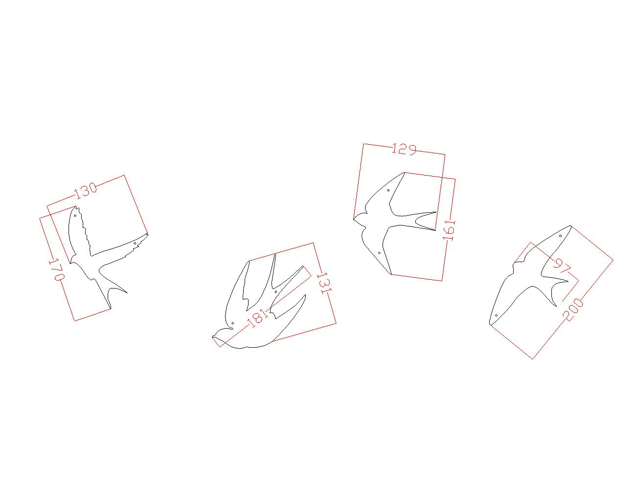 - Set of 4 swallows in different flight poses